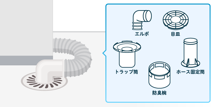 排水口や排水ホースに汚れがたまっている可能性があります。排水口のパーツを外し、ゴミや糸くず、ヌメリなどをきれいに取り除いてください。